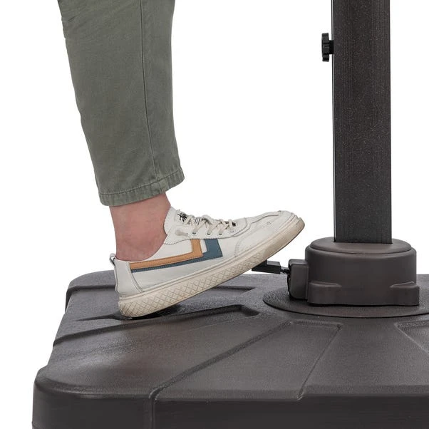 Keep yourself shaded this summer with the Royalcraft 3.5m Deluxe Cantilever Parasol. Designed with an easy tilt operation, this parasol comes with a hand-crank lift system to help you adjust the parasol to be suit your environment. Pre-installed white LED solar light stripes are placed on the inner and outer side of each rip. Easily switch the lights on and off with the easy control button. To help prevent rust, the strong aluminium frame has a solid powder coat. A 100kg base is included with this parasol.