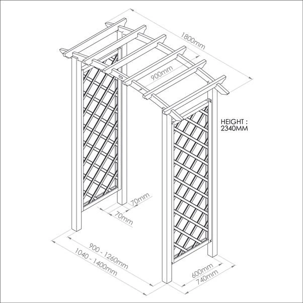The curved rafter of the Daria Arch adds elegance to any garden. The diamond trellis side panels offer ample space for climbing plants, as well as looking attractive. The 1. 80m adjustable width can suit any garden walkway or entrance. Made from pressure treated wood with a 10-year guarantee against rot.