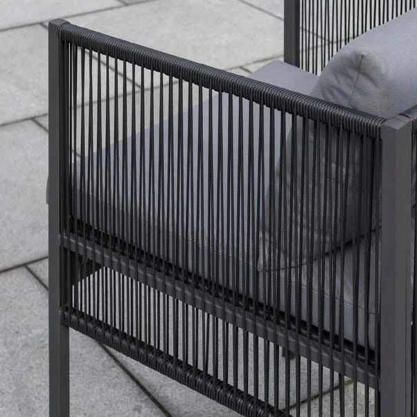 Gather friends and family around for meals al fresco with this beautiful four-seater outdoor dining set! Crafted from high-quality powder-coated steel and rattan, this set is perfect for enjoying a meal in the sun. Plus, the glass top makes cleaning up after dinner simple and stress-free.