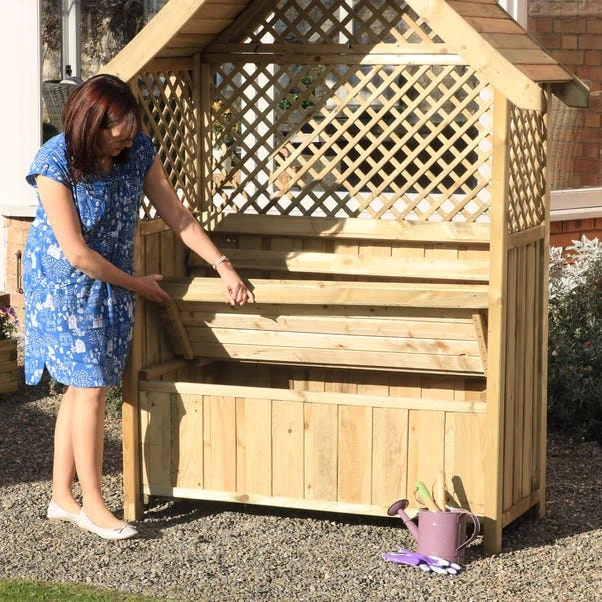 The Norfolk Arbour is a beautifully designed product perfect for those who enjoy sitting in the sun with some shelter. This elegant arbour with the trellis panels is an ideal spot to relax and unwind at the end of a busy day. Along with it’s beauty, it also provides practicality as it comes complete with an under seat storage box and lid.