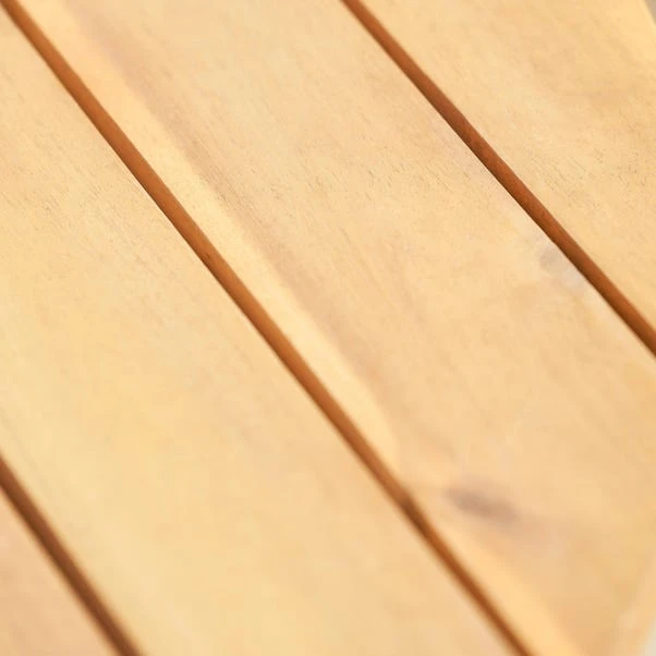 This set is made with a sleek minimalist design using environmentally friendly acacia wood. The circular dining table features a light teak effect wood top, contrasted with a black powder-coated aluminium frame and black rope weave. This set is resistant to stains and fading, ensuring long-lasting quality and durability. With a 3-Year Structural Guarantee, this set is perfect for any outdoor space. Use an Aerocover to protect it when not in use and keep it looking like new.