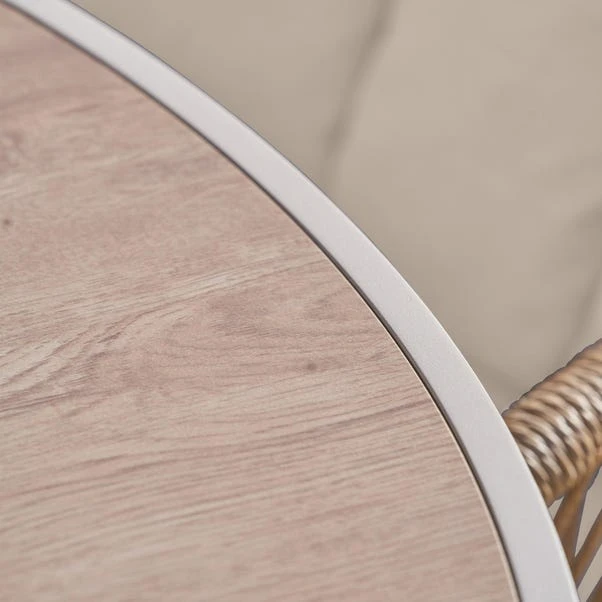 Ideal for large gatherings, the Martic Outdoor 6-Seater Dining Set features a powder-coated aluminium frame, paired with a natural Synthetic Core Weave and Light Putty Olefin cushions for ultimate comfort and durability. The glass table top is finished with an Ash wood effect and has a parasol hole, combining elegance with functionality. The set is resistant to stains, fading, and quick-drying, making it perfect for outdoor dining. For optimal protection, use an Aerocover when not in use. Includes a 3-Year