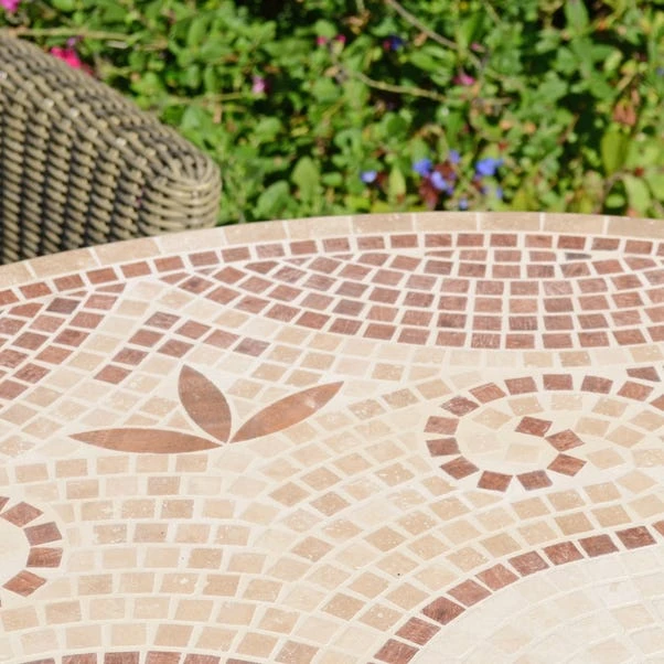 Designed with a circular shade, this Provence Dining Table is perfect for eating outdoors. The stone stop table has a gorgeous mosaic design that has been hand laid. As the table is crafted from marble stone, it is heavy and strong.