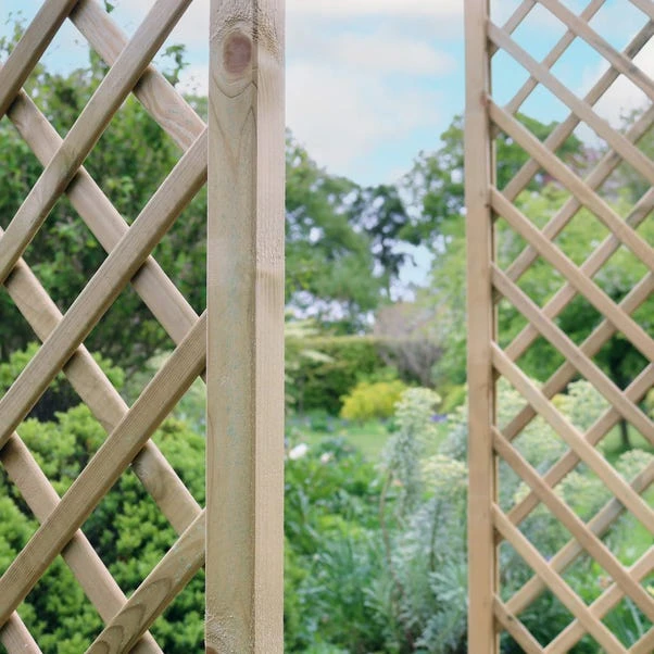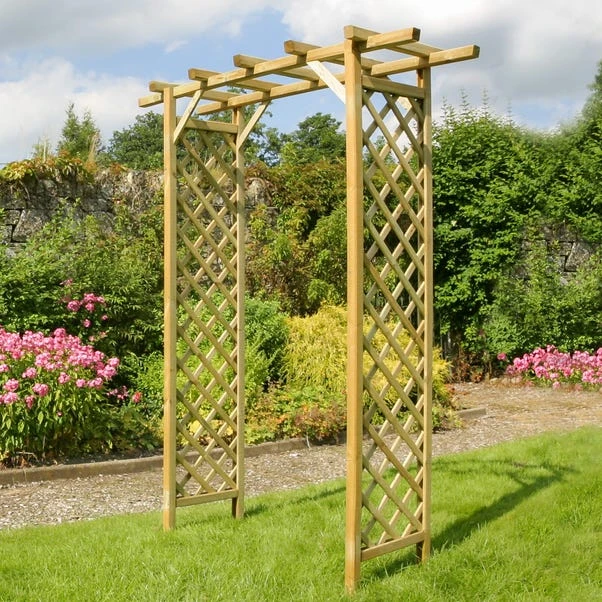 A simple, yet attractive design, the Sunset Arch can be used in a variety of ways. Its adjustable width of up to 1. 60m, allows you to place at the entrance of your garden, use on a garden walkway with planters, or simply position on its own and delight in its natural features.